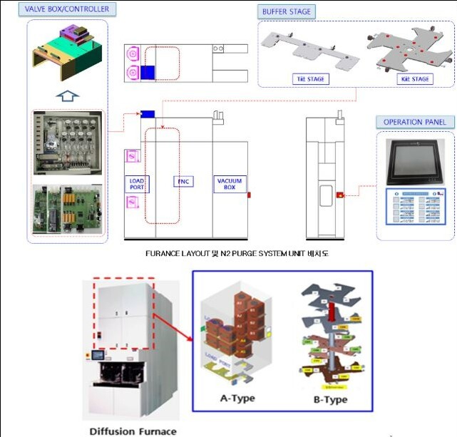 - FOUP 內의 습도와 청정도를 제어하도록 기능을 부여하는 장치이며, 반도체 생산 원료인 웨이퍼(Wafer)의 품질과 신뢰성을 높임으로써 반도체 생산 공정 전체의 수율을 향상시키는 것이 주 목적입니다.